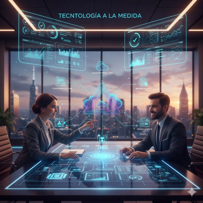 Analizamos las necesidades de su negocio para diseñar una solución a la medida que le permita tener mayor control, seguridad y eficiencia en cada área de su operación. Nuestro objetivo es que la tecnología trabaje para usted, impulsando crecimiento y competitividad.